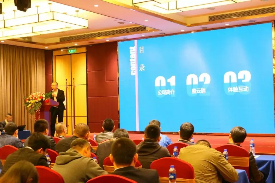 第二環節:星物聯總經理顏偉對葆德最新科研成果星云銷介紹。星云銷的核心是幫助企業實現低成本精準獲客。顏總經理還與經銷商進行了現場體驗互動,這不僅加深了經銷商對星云銷的了解,還讓他們在實操中體驗到星云銷的便捷,高效。